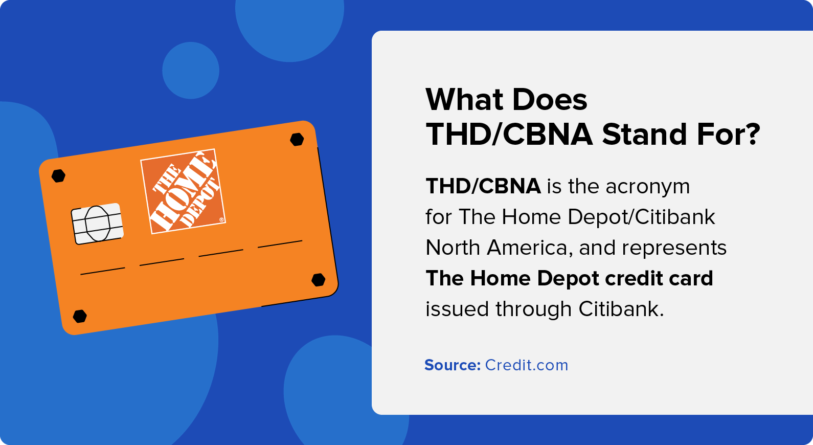 THD/CBNA stands for “The Home Depot/Citibank North America” and mayappear on your credit report if you applied for a retail credit card from The Home Depot.